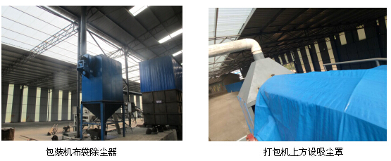冷卻后的型煤經(jīng)自動包裝機打包后,輸送至成品車間儲存待售。包裝過程中會產(chǎn)生一定量的粉塵,在包裝機上方設(shè)集塵罩和吸塵管,收集后經(jīng)布袋除塵器處理后排放。