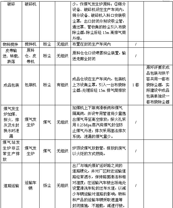 本項目使用原料末煤均外購自周邊煤礦,由貨車運輸至全封閉原煤堆場內(nèi),由鏟車將原煤送入給料機,通過皮帶輸送至篩分機,粒徑≥1cm的原煤堆至塊煤堆場,供煤氣發(fā)生爐使用,粒徑≤1cm的原煤進(jìn)入錘式破碎機破碎。