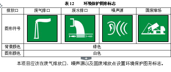 根據(jù)《環(huán)境保護(hù)圖形標(biāo)志排放口(源)》(GB15562.1-1995)及《環(huán)境保護(hù)圖形標(biāo)志固體廢物貯存(處置)場》(GB15562.2-1995)中有關(guān)規(guī)定,在廠區(qū)內(nèi)“三廢”及噪聲排放點設(shè)置標(biāo)志牌,標(biāo)志見下表:
