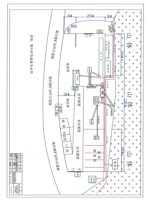 本項目呈不規(guī)則形狀,生產(chǎn)車間封閉,頂棚采用輕鋼結(jié)構(gòu),東、西面用實體墻和輕鋼結(jié)構(gòu),北面為山體,北面和南面用實體圍墻、防風(fēng)抑塵板、輕鋼結(jié)構(gòu),生產(chǎn)車間內(nèi)設(shè)有原煤堆場、篩分-破碎裝置、攪拌機、烘干窯、以及成品庫,煤氣發(fā)生爐設(shè)置在生產(chǎn)車間北面。廠區(qū)東南面設(shè)有磅房、辦公房和庫房。詳見附圖2項目平面布置圖。