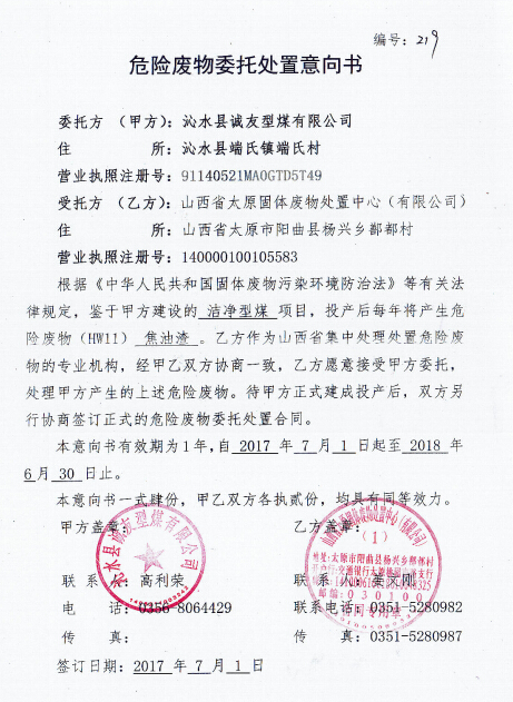 綜上所述,沁水縣誠友型煤有限公司在建設(shè)過程中已基本落實了環(huán)評及其批復(fù)要求,符合驗收條件和要求,可以予以驗收。